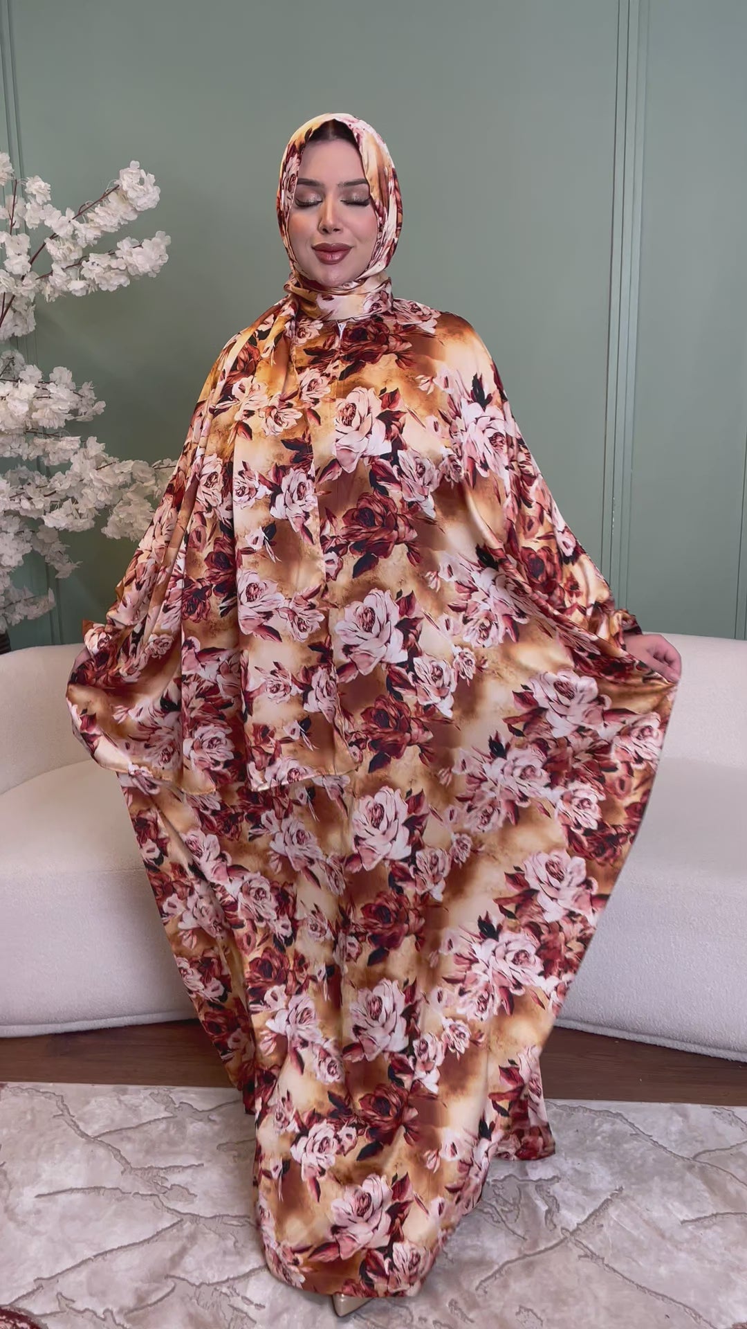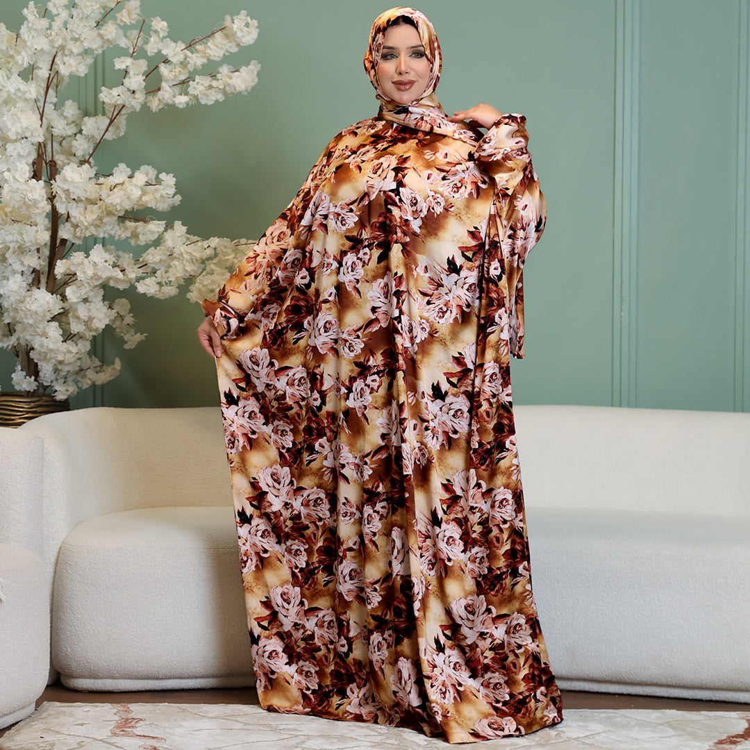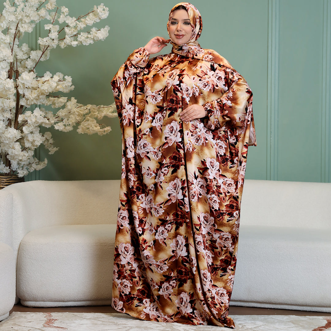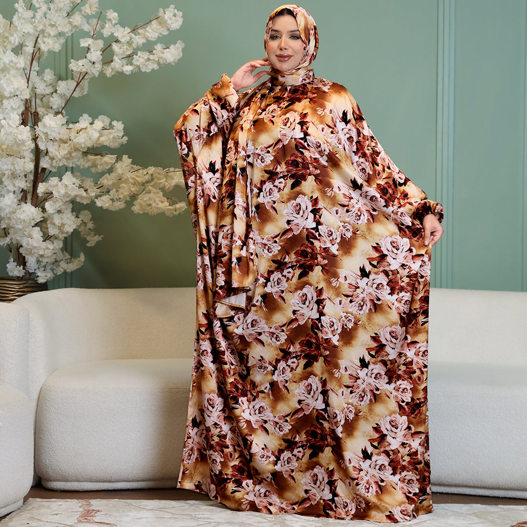 Practical Printed - silky satin prayer dress with headscarf