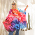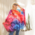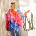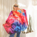 printed autumn jersey poncho with modern designs, free size, fits from 70 kg to 130 kg, and the length from the shoulder is 90 cm.