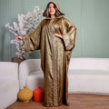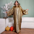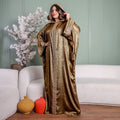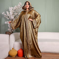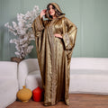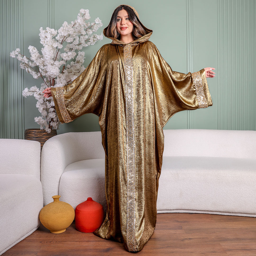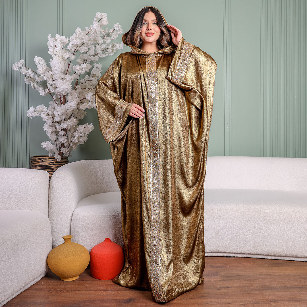 One-piece Shiny Moroccan Isdal with Indian embroidery ribbon and cape Free size, fits 70to100 kg.