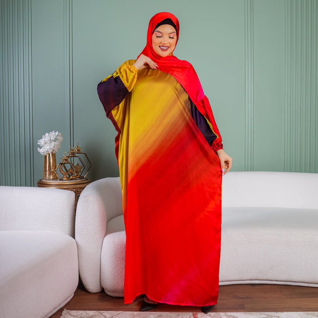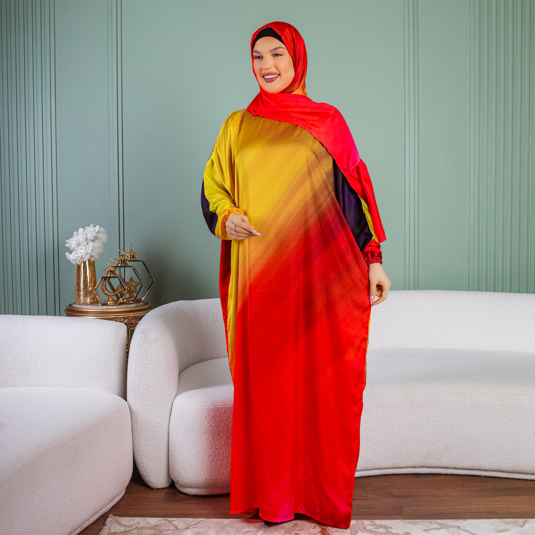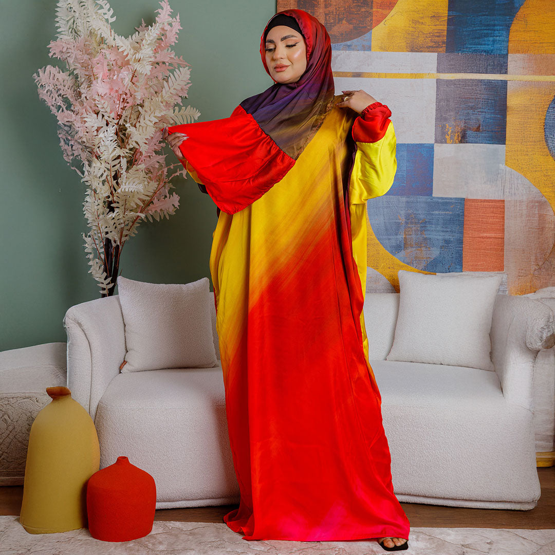 Practical Silky Satin prayer dress (Isdal) (digital print our own designs) Free Size fits 70kg to 130kg With a connected veil