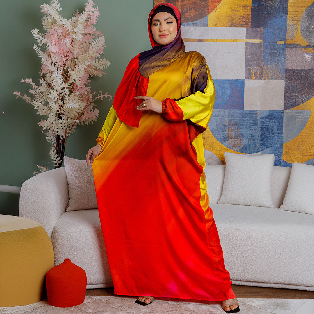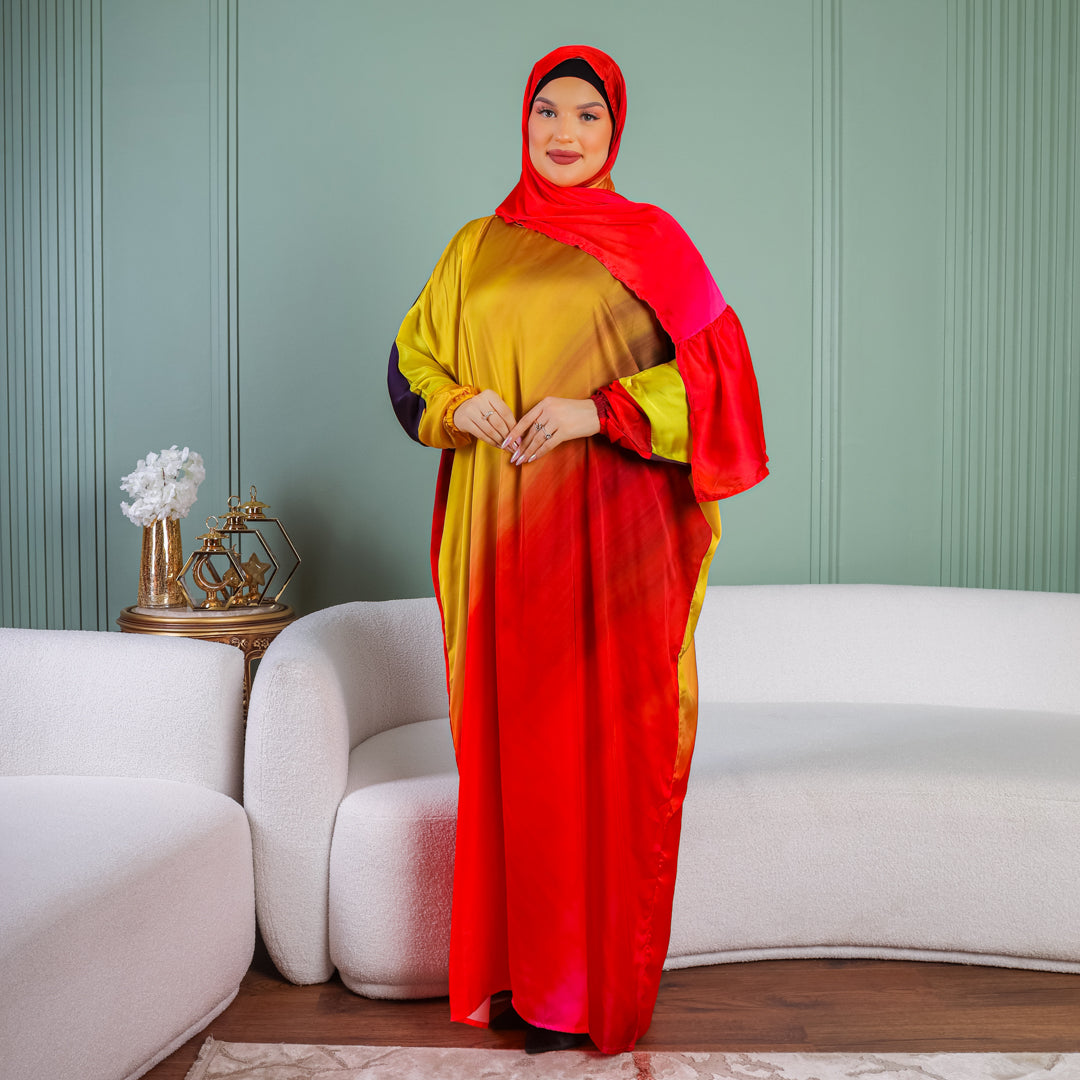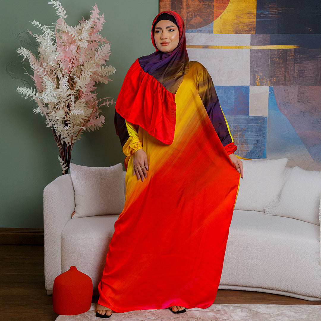 Practical Silky Satin prayer dress (Isdal) (digital print our own designs) Free Size fits 70kg to 130kg With a connected veil