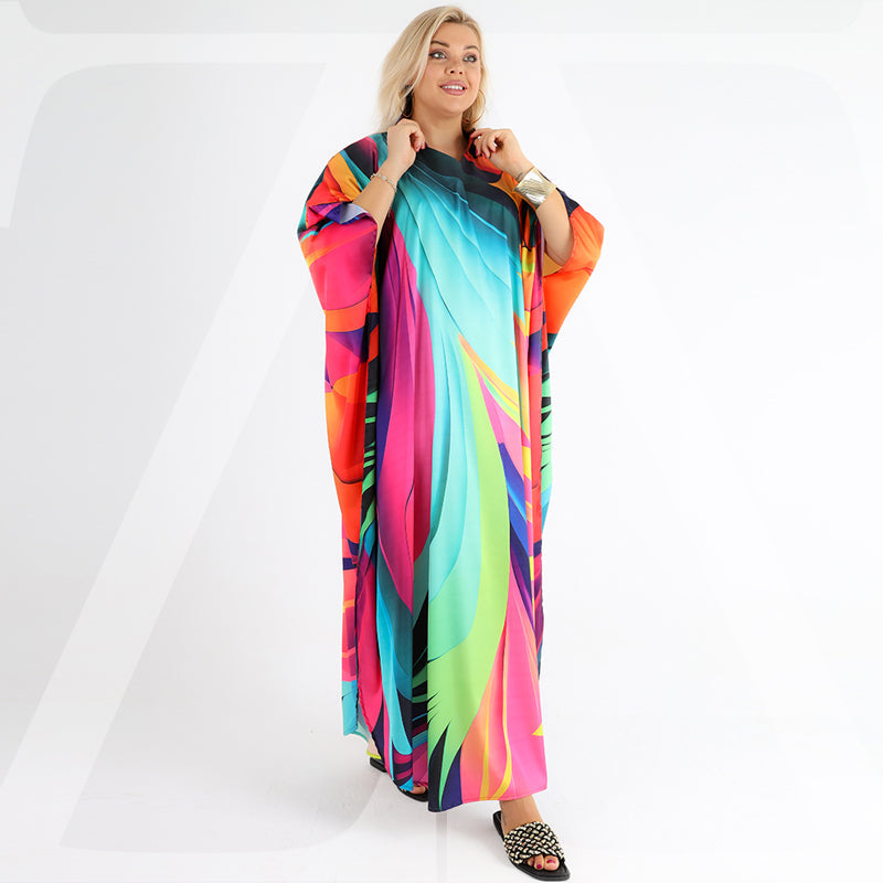 Silky Satin dress ( Armani) dress with digital printing from our own designs, free size, fits 70 kg to 130 kg, butterfly design