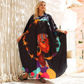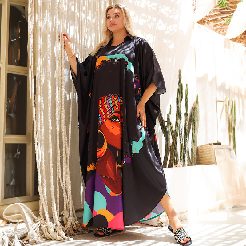 Silky Satin dress ( Armani) dress with digital printing from our own designs, free size, fits 70 kg to 130 kg, butterfly design