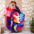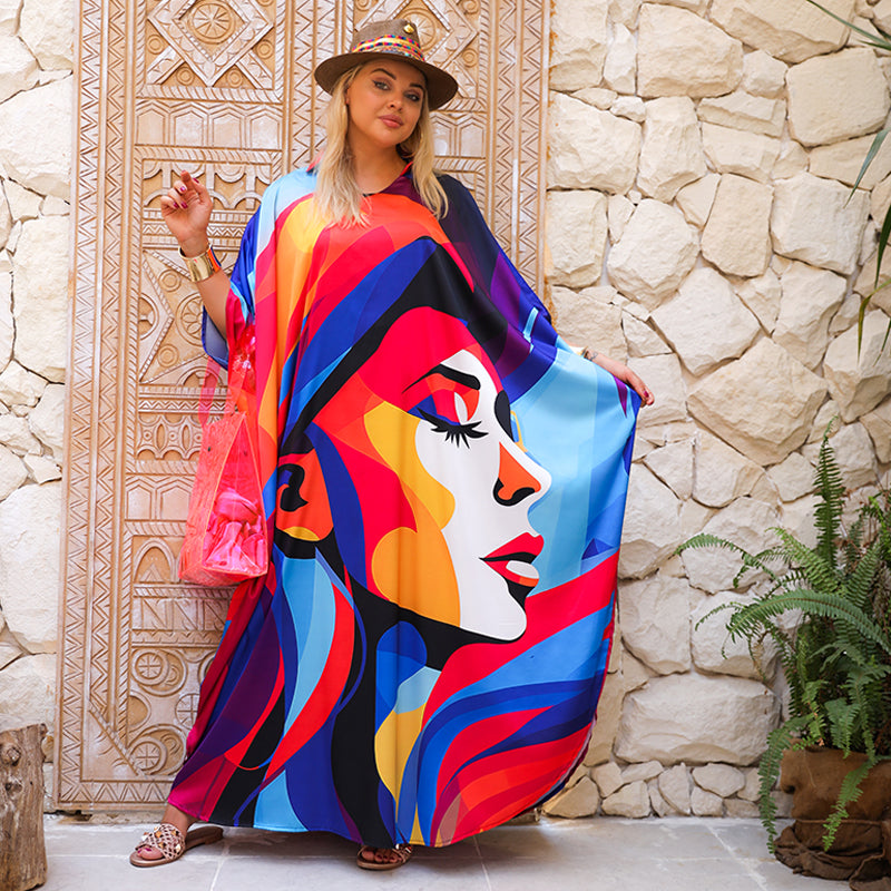 Silky Satin dress ( Armani) dress with digital printing from our own designs, free size, fits 70 kg to 130 kg, butterfly design