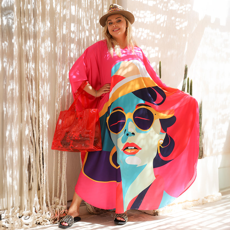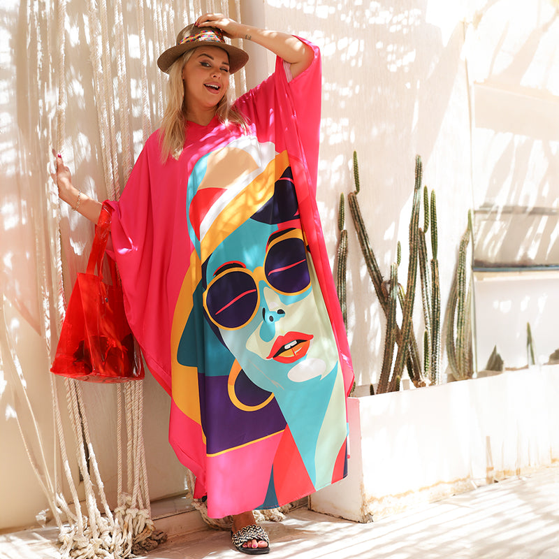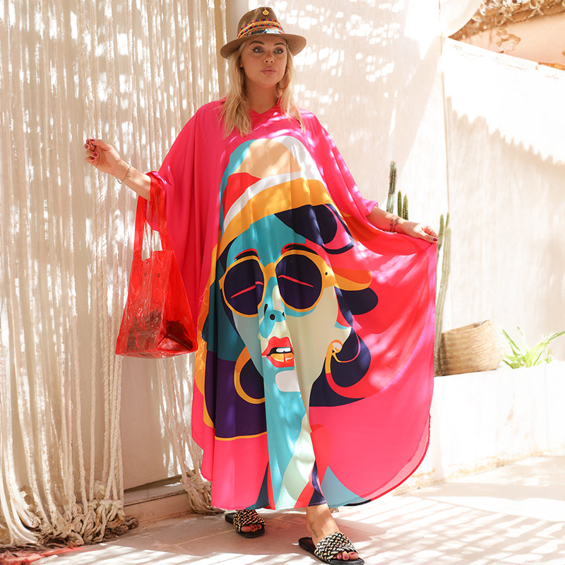Silky Satin dress ( Armani) dress with digital printing from our own designs, free size, fits 70 kg to 130 kg, butterfly design