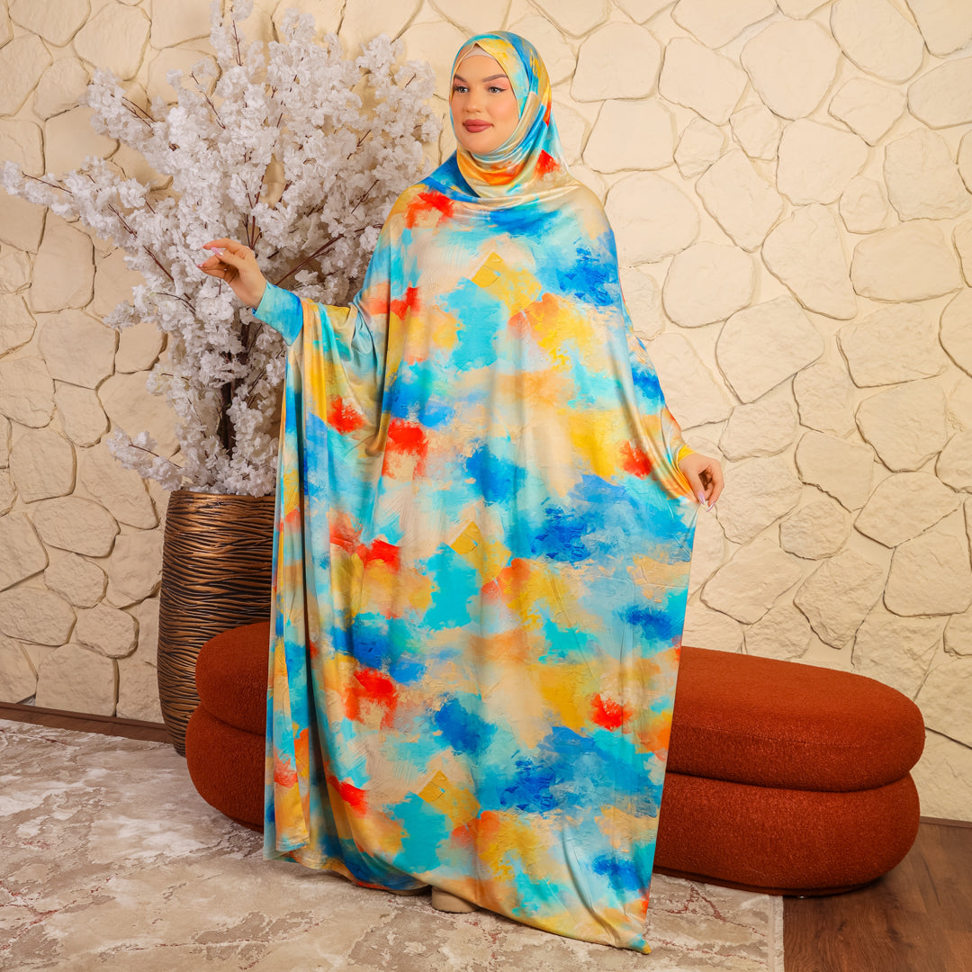 Practical Bahraini prayer dress (Isdal)Soft Cotton (synthetic cotton), free Size, fits 70kg to 100kg With a headscarf